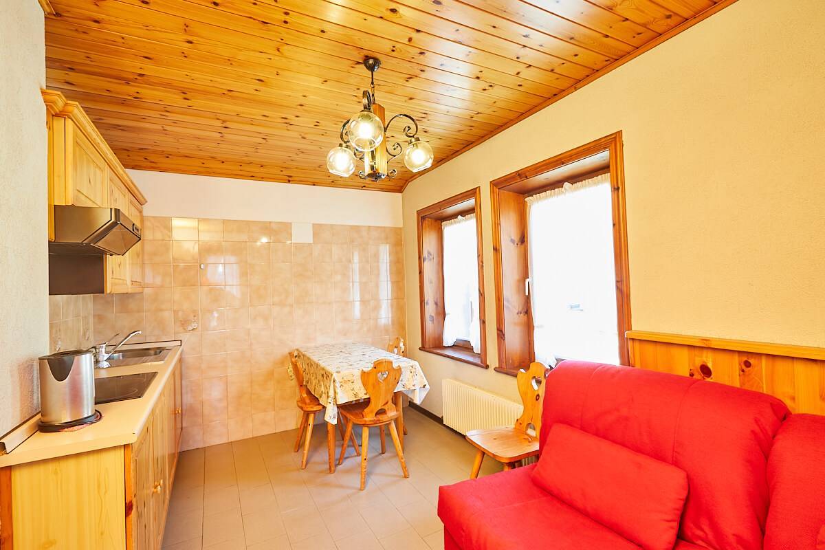 Appartamento mansardato, con travi a vista e l’effetto di calore creato dal legno. I 43 mq di superficie sono così suddivisi: camera con letto matrimoniale, soggiorno con 2 divani-letto singoli e angolo cucina attrezzato, bagno con doccia. Un bilocale adatto ad ospitare 2-4 persone.
